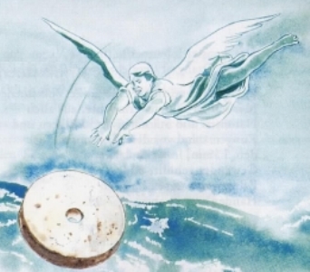 E um anjo forte levantou uma pedra como uma grande mó e a lançou no mar, dizendo: Assim será derrubada Babilónia, a grande cidade, e nunca mais será encontrada.