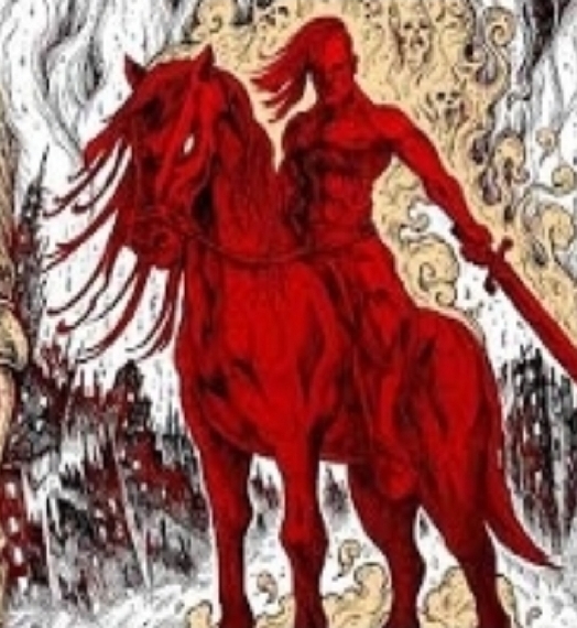Apo.6:3 Quando o Cordeiro abriu o segundo selo, ouvi o segundo ser vivente dizer: “Venha!” 4 Então saiu outro cavalo; e este era vermelho. Seu cavaleiro recebeu poder para tirar a paz da terra e fazer que os homens se matassem uns aos outros. E lhe foi dada uma grande espada.